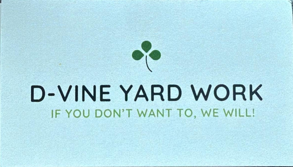 At D-Vine Yard Work, we believe in a strong work ethic and a personal touch. We greet our customers in a natural environment; providing firsthand demonstrations of our workmanship. This allows you to see our capabilities and experience our dedication to quality. We're not just another lawn care service – we're your neighbours; committed to providing exceptional service with a smile.